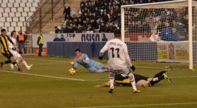El Albacete era dominado pero no se dejaba superar y a la contra llevaba peligro. En el minuto 34, tras un córner, jugada de Jorge Díaz por la derecha que centra pero no hay rematador y llega Adán.