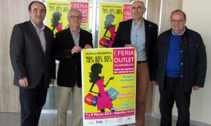 Los días 7 y 8 de marzo, el Pabellón de Promoción Económica del recinto ferial, acogerá la I Feria Outlet de Villarrobledo, organizada por la Asociación de Comerciantes de Villarrobledo (ADECOV), y que ha sido presentada por el alcalde de la ciudad, Valentín Bueno, el concejal de Desarrollo Local, José Antonio Cabañero, el presidente de ADECOV, Santiago Lapaz, y el vocal de FEDA, Diego Caballero.