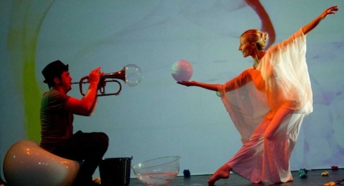 “Burbujas de papel” es un espectáculo de danza, música en directo y multimedia, dirigido a público familiar.