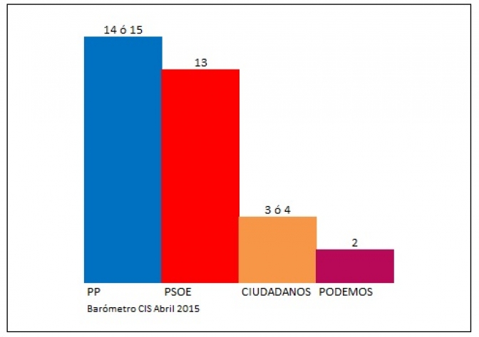 Según los datos del barómetro de abril el PP sería la fuerza más votada en caso de celebrarse ahora las elecciones autonómicas con un 18,5% de los apoyos, seguida del PSOE, que obtiene el 14,9% de los votos; Ciudadanos con un 8,3%, Podemos con un 8%, Ganemos con un 2,8% y UPyD con un 0,5%.