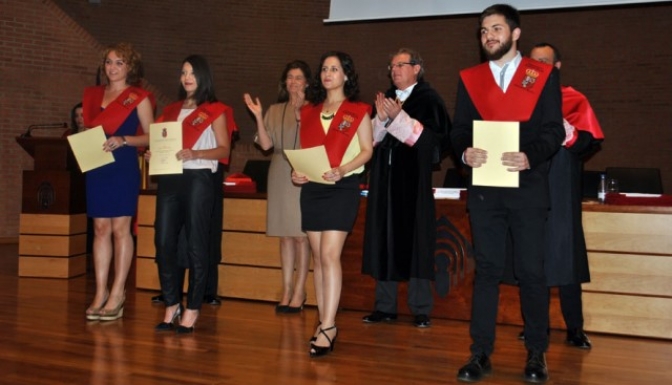 Tras la imposición de becas, se entregó el Premio Extraordinario Fin de Carrera del Grado en Derecho 2013/2014 a José Ángel Gómez Requena, y a continuación se proyectó el video “Momentos para recordar”, realizado por los estudiantes de la promoción.