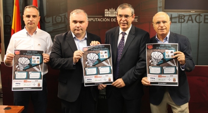 El vicepresidente de la Diputación, Constantino Berruga, junto con el alcalde de La Roda, Vicente Aroca; el responsable de la Federación de Baloncesto en Castilla-La Mancha, Constantino Berruga Martínez, y el director de la Sección en el Club Polideportivo La Roda, Gaspar Cabañero, han informado de la celebración de la fase de ascenso a la Liga EBA de baloncesto, que se va a celebrar en el Pabellón Juan José Lozano Jareño rodense, el próximo fin de semana del 16 y 17 de mayo.