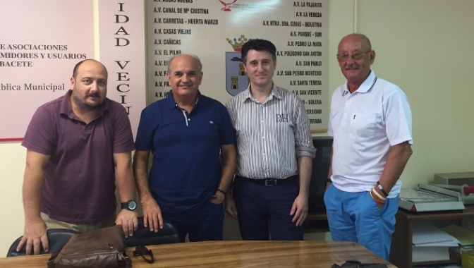 Pedro Soriano, concejal en el Ayuntamiento de Albacete, se ha reunido con la Junta Directiva de la Federación de Asociaciones de Vecinos de Albacete. El presidente de la FAVA, Pepe Reina, ha entregado al edil el Documento Marco con las reivindicaciones de las asociaciones vecinales y que se elaboró antes de las elecciones municipales.