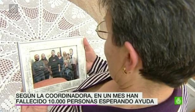 nacional por algo nada agradable, la muerte de una persona mientras esperaba una ayuda como dependiente. Ocurría en las noticias de La Sexta y allí se denunciaba también que cada cuatro minutos muere una persona dependiente en situación de desamparo y cada cuatro minutos se entierra una persona dependiente. Y es que las Plataformas en Defensa de la ley de dependencia denuncian el dramático dato. "Este año ya han fallecido 127.000 personas dependientes, de ellas, 10.000 el último mes. Una deriva perversa sin fin. Hay más de 85.000 personas a la espera de valoración" se decía en la información.