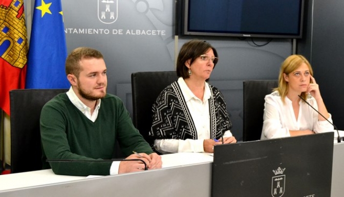 La portavoz de Ganemos Albacete, Victoria Delicado; el concejal del PSOE, Manuel Martínez; y la portavoz