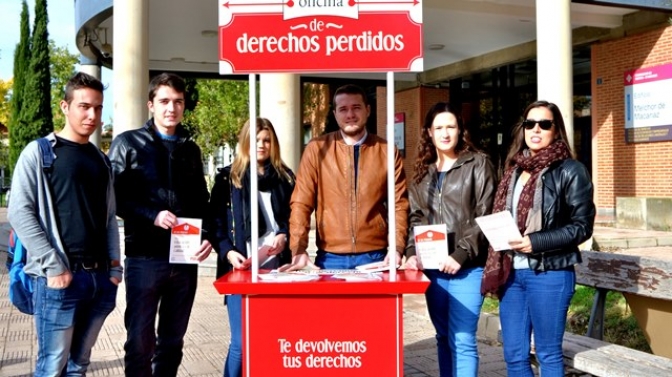 El secretario general de Juventudes Socialistas en la provincia de Albacete y candidato al Senado, Manuel Martínez, presentó esta mañana, en el Campus de la UCLM, la campaña informativa que desarrollará Juventudes Socialistas bajo el lema ‘Oficina de Derechos Perdidos’, que daba comienzo hoy en torno al ámbito educativo y que, en próximas fechas, también abordará áreas como las de Empleo e Igualdad.