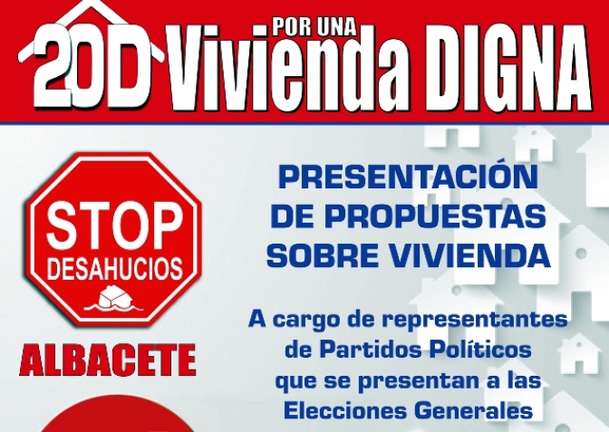 El planteamiento para este acto es una mesa redonda en la que los candidatos den a conocer las propuestas que llevan en sus programas sus partidos sobre este tema de los desahucios.
