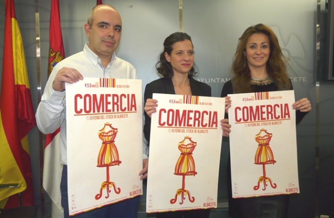 La Concejal de Turismo del Ayuntamiento de Albacete Rosa Gonzalez junto a la Diputada provincial de Turismo Raquel Ruiz y el presidente de la Federación de Comercio de Albacete Julian Sevilla han presentado en la mañana de hoy la XI edición de la Feria de Stock “Comercia 2016”, que se celebrará en Albacete del 4 al 6 de marzo, en horario de 10:00 a 21:00 horas.