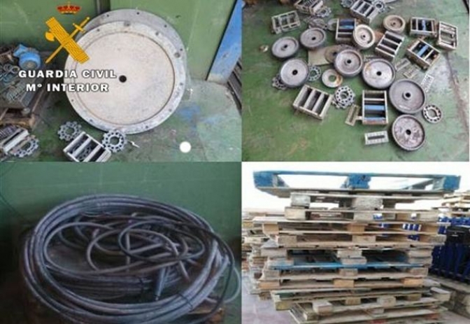 La Guardia Civil pudo recuperar todo el material robado, bombas de extracción de agua, calentadores, motores eléctricos, poleas, cajetines de máquinas para lijar planos, platos de máquinas de brillo y palets de madera, además de varios metros de cable de cobre, todo ello valorado en 1.500 euros.