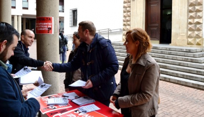 “Entendemos que el alcalde podrá decirnos que no, pero no podrá seguir diciendo no si un millar de jóvenes estudiantes le traslada que es necesario ampliar y mejorar nuestra red de bibliotecas, para aumentar su oferta de puestos de estudio, puesto que a fecha de hoy la ratio sigue siendo muy deficiente, un puesto de estudio por cada 14 estudiantes”, expuso Manuel Martínez.