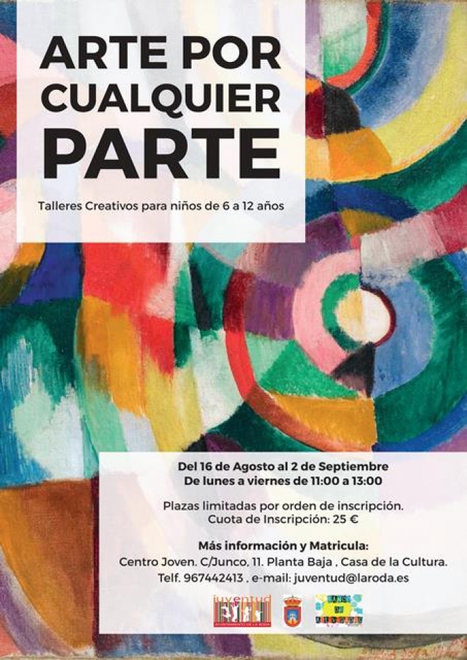 Unos talleres creativos para niños de 6 a 12 años que se realizarán del 16 de agosto al 2 de septiembre, de lunes a viernes, de 11:00 a 13:00 h, en la Casa de la Cultura. La cuota de inscripción son 25 € y las plazas, limitadas, se asignarán por riguroso orden de inscripción.