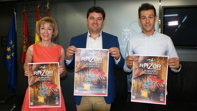 El Concejal de deportes del Ayuntamiento de Albacete, Francisco Navarro, junto a la Diputada de deportes, Mª Victoria Leal y al representantes de Strobilussports, empresa organizadora de la carrera, Oscar Martinez, han presentado en la mañana de hoy la I Razor Challenge a iniciativa de StrobilusSports, con la colaboración del Instituto Municipal de Deportes y la Diputación Provincial, que se celebrará el 9 de Julio a las 18.30 horas en Albacete.