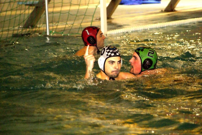Tras el partido infantil, venía el plato fuerte de la tarde. Los equipos masculinos serían los siguientes en enfrentarse. Los albaceteños buscaban el milagro, conscientes de que la liga era casi imposible, ya que para poder conseguirla, necesitaban ganar y esperar que Valdepeñas y Poseidón empataran en la jornada siguiente (que se jugaría el domingo). Lo primero se consiguió, pero Valdepeñas ganó al Poseidón y se proclamó con el título de liga. Volviendo al partido, el Albacete saltó al agua dispuesto a conseguir los tres puntos desde el primer minuto, y con una presión asfixiante en defensa comenzó a labrarse la victoria. Un gol tras un rechace en una superioridad, y otro desde la posición de uno ponían en ventaja a los albaceteños, una ventaja que ya no perderían durante todo el partido, aunque antes de terminar el primer cuarto los valdepeñeros se acercarían en el marcador tras un error de marca en la defensa albaceteña. El segundo cuarto fue un intercambio de goles por parte de los dos equipos que favorecería de nuevo al Albacete, que sumaría un gol mas que su rival, y se iba al descanso con una ventaja de 4 goles a 6, materializando en este cuarto goles de todo tipo: en superioridades, con tiros de fuera, goles en la boya y anotando un penalti, demostrando así el potencial del ataque albaceteño. Tras el descanso el partido siguió igual, un Valdepeñas que no conseguía crear ocasiones con sus boyas, (ni con el principal ni entrando por el cinco), se estrellaba una y otra vez con la buena defensa visitante, que cortaba prácticamente todos los ataques. Un gol para cada equipo en superioridad y otro para los albaceteños con un buen tiro exterior, dejaba el marcador en 5 a 8 para empezar el último cuarto, en el que volvería a haber un intercambio de goles, que dejaría el partido en el definitivo 8 a 11 final. Un partido dominado desde el inicio por el Waterpolo Albacete, que jugó uno de sus mejores partidos en esta difícil piscina, frenando en todo momento el ataque rival, y combinando en ataque el juego interior, con los tiros de fuera y materializando muy bien las superioridades. Lástima que los albaceteños hicieran un inicio de liga tan malo, que los dejó casi sin opciones en una liga, que por segundo año, gana Valdepeñas. Enhorabuena al campeón.