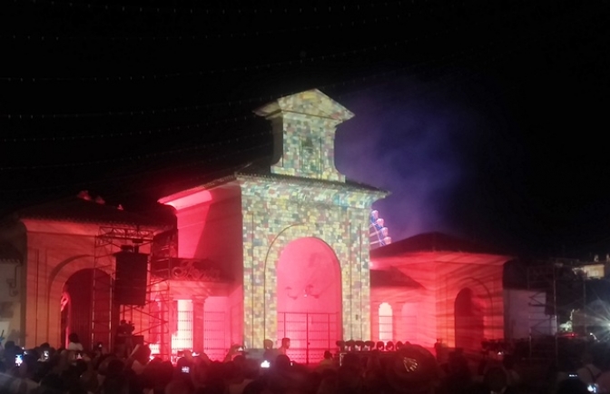 Tras horas de cabalgata, a las 23.11 exactamente el alcalde Javier Cuenca abría la Puerta de Hierro. Justo antes baile manchego con el grupo de Coros y Danzas de Magisterio y un espectáculo con luz, música y pirotecnia que resultó muy brillante.