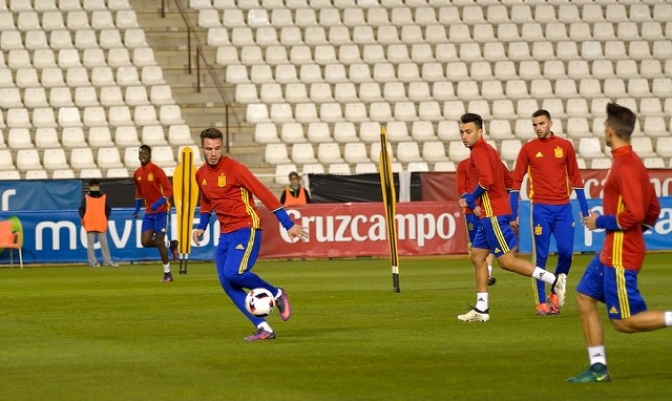 Miles de personas en el entrenamiento de la sub-21 en Albacete, ante el choque decisivo contra Austria