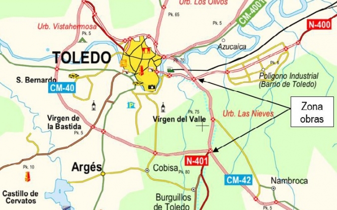 Los vehículos que circulen por la carretera N-401 en sentido Madrid, en el enlace donde conecta con la autovía CM-42, se desviarán por la citada autovía sentido Madridejos hasta el enlace 4 “Nambroca”, para realizar en este enlace el cambio de sentido correspondiente.