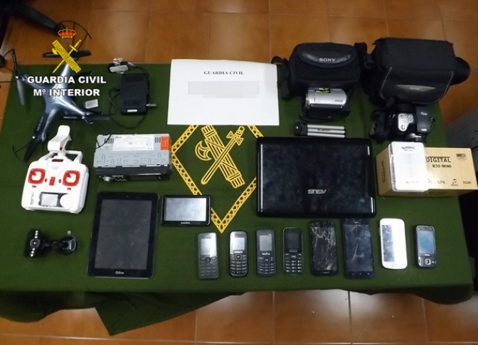 En el inmueble sede de la organización criminal desmantelada se incautaron objetos como herramientas y maquinaria industrial, relojes, piezas de joyería y dispositivos electrónicos, los cuales, una vez cotejados con las denuncias presentadas, han permitido esclarecer cuatro delitos de robo con fuerza en establecimientos públicos, dos de ellos en Puebla de Don Fadrique, uno en Caudete y otro en Fuente Alamo.
