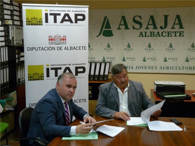 y vicepresidente de la Diputación, Constantino Berruga, y el presidente de la Asociación de Jóvenes Agricultores de Albacete, José Pérez, han firmado un convenio de colaboración entre el ITAP y ASAJA para la promoción de actividades del sector agrario de la provincia de Albacete.
