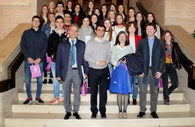 El alcalde de Albacete, Javier Cuenca, ha recibido en el salón de Plenos del Ayuntamiento albaceteño a las alumnas del ‘Ursulinenschule Hersel’ de la ciudad alemana de Bornheim que durante estos días se encuentran en nuestra ciudad, participando en el programa de intercambio con el Colegio Bilingüe ‘Compañía de María’ de la capital.