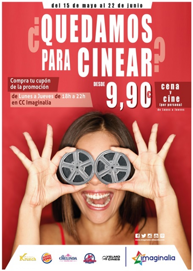La campaña  de Cine y Cena del  CC Imaginalia irá del 15 de mayo al 22 de junio. Los clientes tienen esta promoción de lunes a jueves al precio de desde 9,90 euros. Para comprar el cupón de la promoción, todas aquellas personas que estén interesadas puede hacerlo en unos espacios que se habilitarán en el pasillo central del centro comercial, en horario de 18 a 22 horas, donde habrá personal que informará y venderá estos cupones y que se podrán utilizar desde el día 15 de mayo.