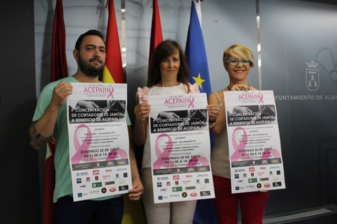 La Concentración se llevará a cabo el próximo domingo día 25 de junio, desde las 11’00 horas y hasta las 14’00 horas, en la Plaza del Altozano, donde 30 cortadores de jamón, se darán cita mostrando otra forma solidaria de apoyar la investigación del cáncer y también, el arte de su oficio y todo ello amenizado con actuaciones en directo, sorteos, música y muy buen ambiente, con el precio de plato de jamón y bebida tan solo 3 euros destinados íntegramente a Acepain.