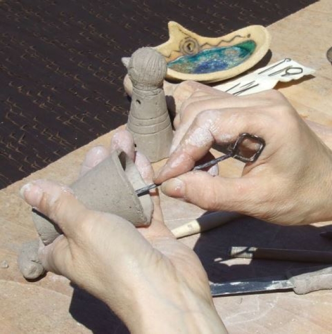 Varios artesanos estarán trabajando en el puesto para enseñar al público con cuánta paciencia, habilidad y cariño realizan sus productos.  Estarán tallando madera o piedra, modelando barro, pintando.  El alfarero enseñará a los niños (¡y adultos!) cómo hacer su propio cuenco o vaso en el torno e incluso habrá un taller para aprender a hacer papel reciclado.  Otros artesanos darán talleres en los que los niños pueden hacer su propia pieza de artesanía para llevarla a casa.  Para los más pequeños habrá un carrusel y una ludoteca con juegos tradicionales de mesa.