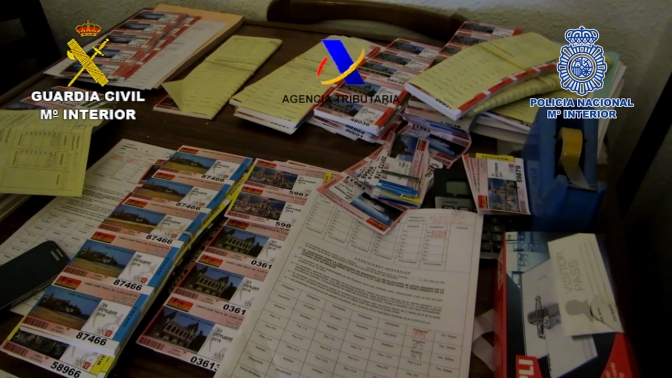 Tras confirmar que se estaban investigando de manera paralela estos dos hechos similares cometidos por la misma organización criminal pero en distintas provincias con el fin de dificultar su seguimiento e investigación, se continúa de manera conjunta, comprobando cómo una de las empresas utilizadas por la organización y dedicada a la promoción y ayuda de proyectos destinados a personas con discapacidad, habría organizado un sorteo de lotería, cuyos boletos premiados fueron emitidos “a posteriori” una vez realizado el sorteo de una conocida organización a nivel nacional.