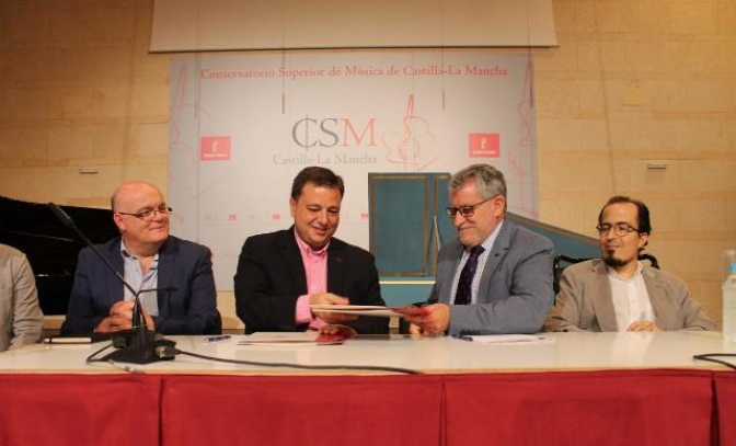 Este acuerdo ha sido firmado hoy en la sede del Conservatorio con la presencia del delegado de la Junta, Pedro Antonio Ruiz Santos; el concejal de Banda de Música, Federico Pozuelo; y los directores del CSMCLM, Miguel Ángel Oreo; y de la BSMA, Miguel Vidagany.
