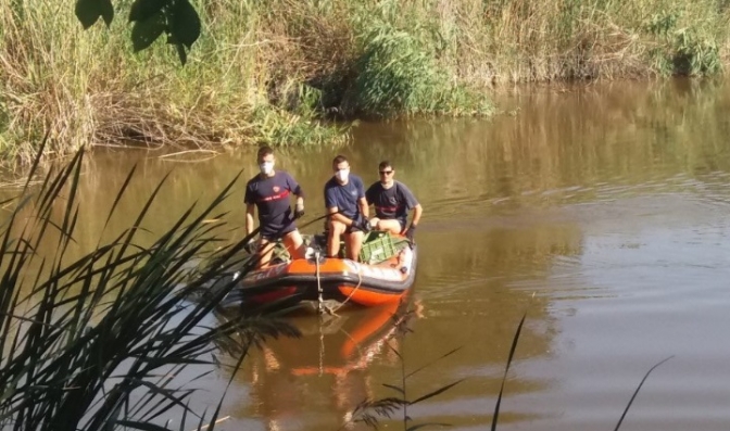 Por tal motivo, se ha activado un dispositivo para la retirada de las carpas muertas que ha corrido a cargo de bomberos del SEPEI del parque hellinero, quienes a bordo de una lancha han ido recogiendo las que iban apareciendo sobre la superficie.