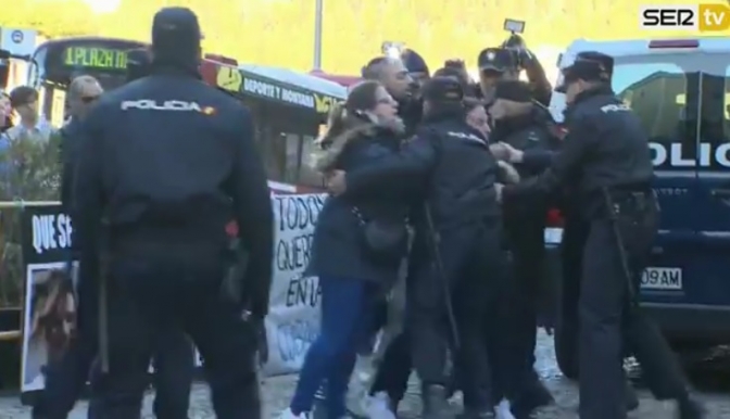 "No nos mira a la cara. Está siempre con su capucha", ha recriminado Alina a Morate, quien ha vuelto hoy a entrar a la Audiencia provincial bajo la capucha de su chándal y a la carrera escoltado por dos agentes de la Guardia Civil.