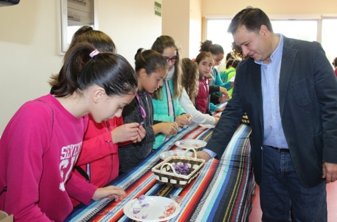 Acompañado por la concejal de Educación, Mº Ángeles Martínez, el alcalde de Albacete ha compartido con 50 alumnos del Colegio Público ‘Cristóbal Valera’ de la capital actividades como la monda del azafrán y la visita al Laboratorio Didáctico, en el marco de estas V Jornadas.