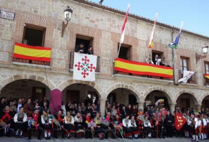 Llegados al templo se celebra la Misa Mayor y, tras ella, vuelve el cortejo a la Plaza Mayor a realizar los bailes, tanto infantiles como de adultos. Después del almuerzo, tiene lugar el “correr del gallo”, de larga tradición y es uno de los momentos más emocionantes de la fiesta con la participación de muchos mozos montados a caballo.  Ya por la tarde se hace el acto oficial de presentación del Encuentro con la actuación de las distintas cuadrillas participantes.