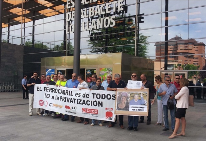 de RENFE y ADIF se concentraron el viernes por la mañana en la Estación de tren de Albacete-Los Llanos en contra de las privatizaciones y de la liberalización del ferrocarril y en defensa del sector público ferroviario y de sus puestos de trabajo.