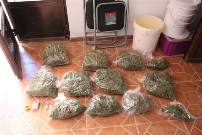 Tras estas investigaciones, los agentes iniciaron un dispositivo policial para asegurar la incautación de la droga y proceder a su retirada del mercado, procediendo a la entrada y registro de la vivienda, en la cual localizaron y aprehendieron 4,200 kilogramos de cogollos de marihuana en estado seco, ocultos en el interior de cubos de plástico perfectamente envasados en distintas bolsas de plástico, las cuales hubieran alcanzado un valor en el mercado ilícito de unos 19.000 euros.