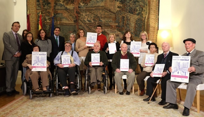 Al acto han acudido también un grupo de mayores, entre los que se encontraba Santiago López Morales, que ha sido la primera persona en solicitar esta estancia temporal dentro de la campaña 'Ni un mayor solo en Navidad'.