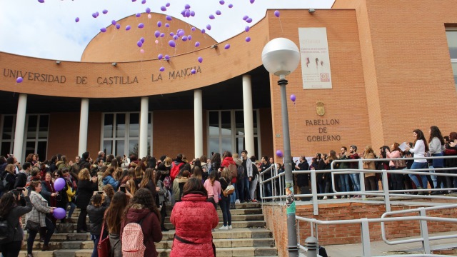 En otro lugar de la ciudad, en la Universidad de Castilla-La Mancha, otra concentración. Allí estuvieron las concejalas Mª Ángeles Martínez y Llanos Navarro (ambas del PP) que asistieron a la lectura de un manifiesto y suelta de globos en la Universidad de Castilla La Mancha para celebrar el Día Internacional de la Mujer