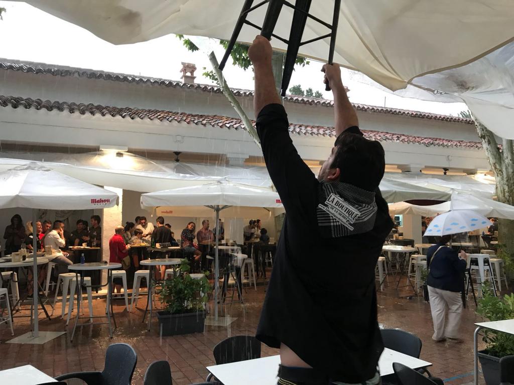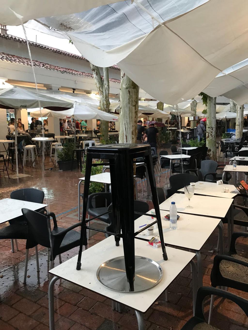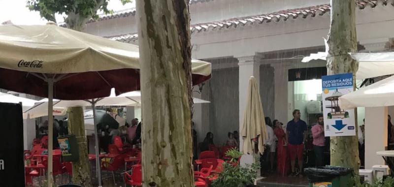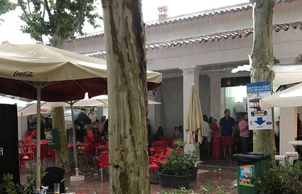 Una tormenta que además de provocar la ‘estampida’ general del recinto ferial y el paseo de la feria también hizo que se suspendiera la corrida de rejones, con la plaza llena. En la segunda parte de la lidia y con lo que estaba cayendo la presidenta suspendió la corrida.