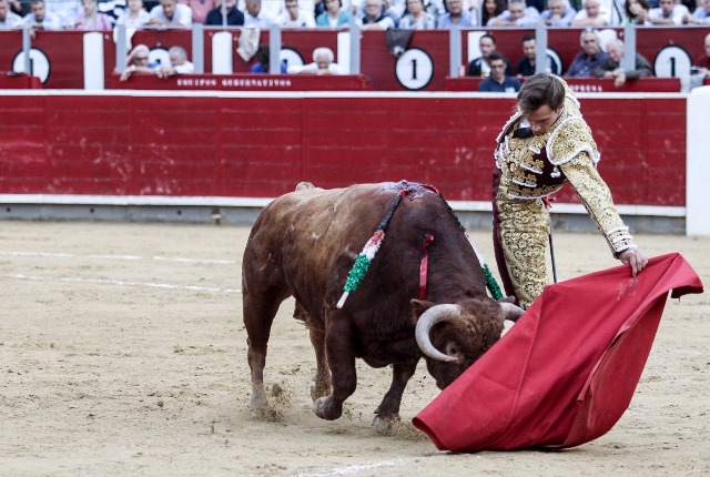 Francisco de Manuel, de verde manzana y oro: estocada ligeramente trasera (ovación); y pinchazo, casi entera y cinco descabellos (silencio tras aviso).