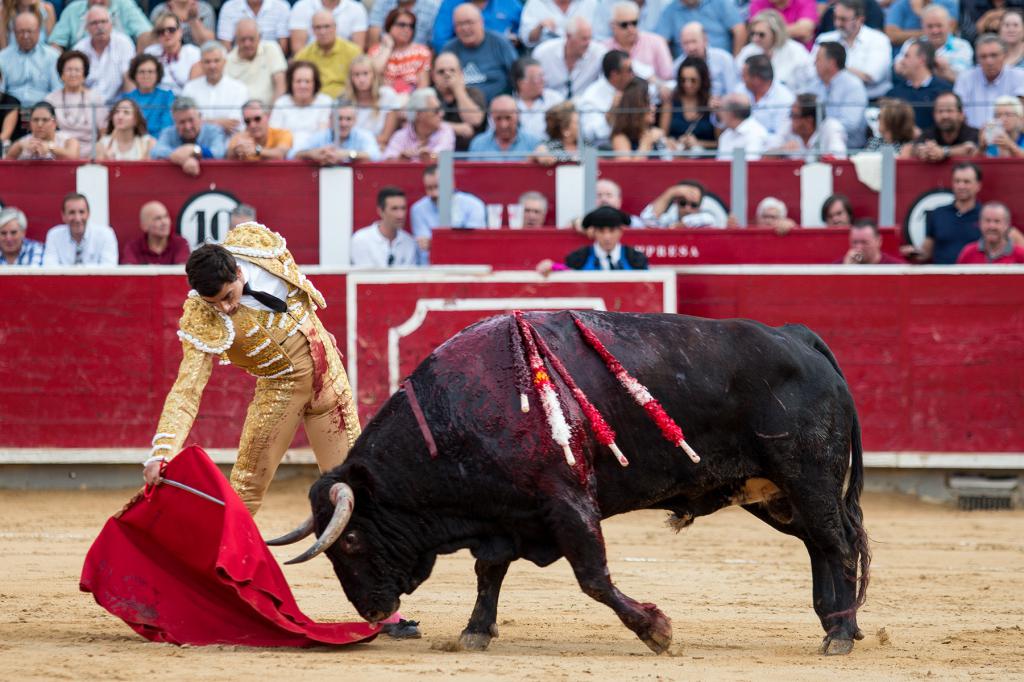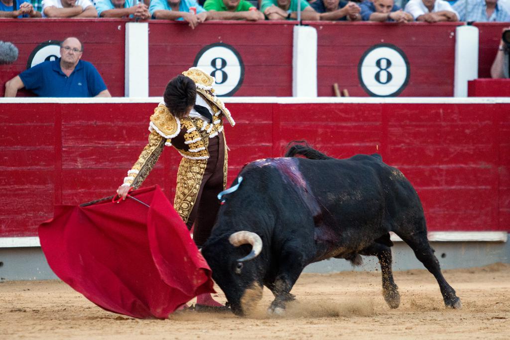 Ureña no tuvo prácticamente enemigo en su primero, un toro sin casta y al que le costaba un mundo tomar los engaños. El lorquino anduvo muy dispuesto en todo momento, robándole los muletazos de uno en uno, algunos de ellos muy buenos por el empaque y la torería que tuvieron, aunque sin llegar a redondear faena por falta de oponente. Faltó contundencia con los aceros y fue ovacionado.