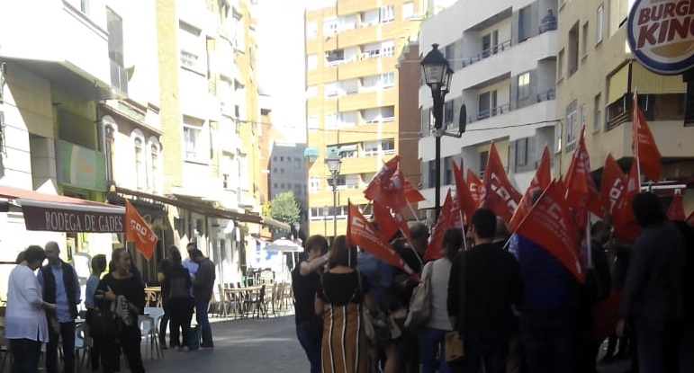 “Reclamamos la readmisión de los compañeros despedidos y llamamos a la plantilla a que se organice en torno a CCOO”, ha manifestado Carmen Juste, que ha agradecido a los manifestantes su presencia en la concentración de apoyo a las trabajadoras y trabajadores de Burger King.