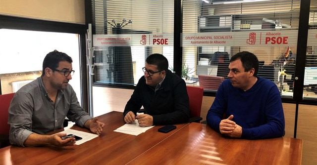 El portavoz del Grupo Municipal Socialista, Modesto Belinchón, y el secretario territorial de UGT en Albacete, Francisco Javier González, mantuvieron una reunión, en la sede del Grupo Municipal Socialista.