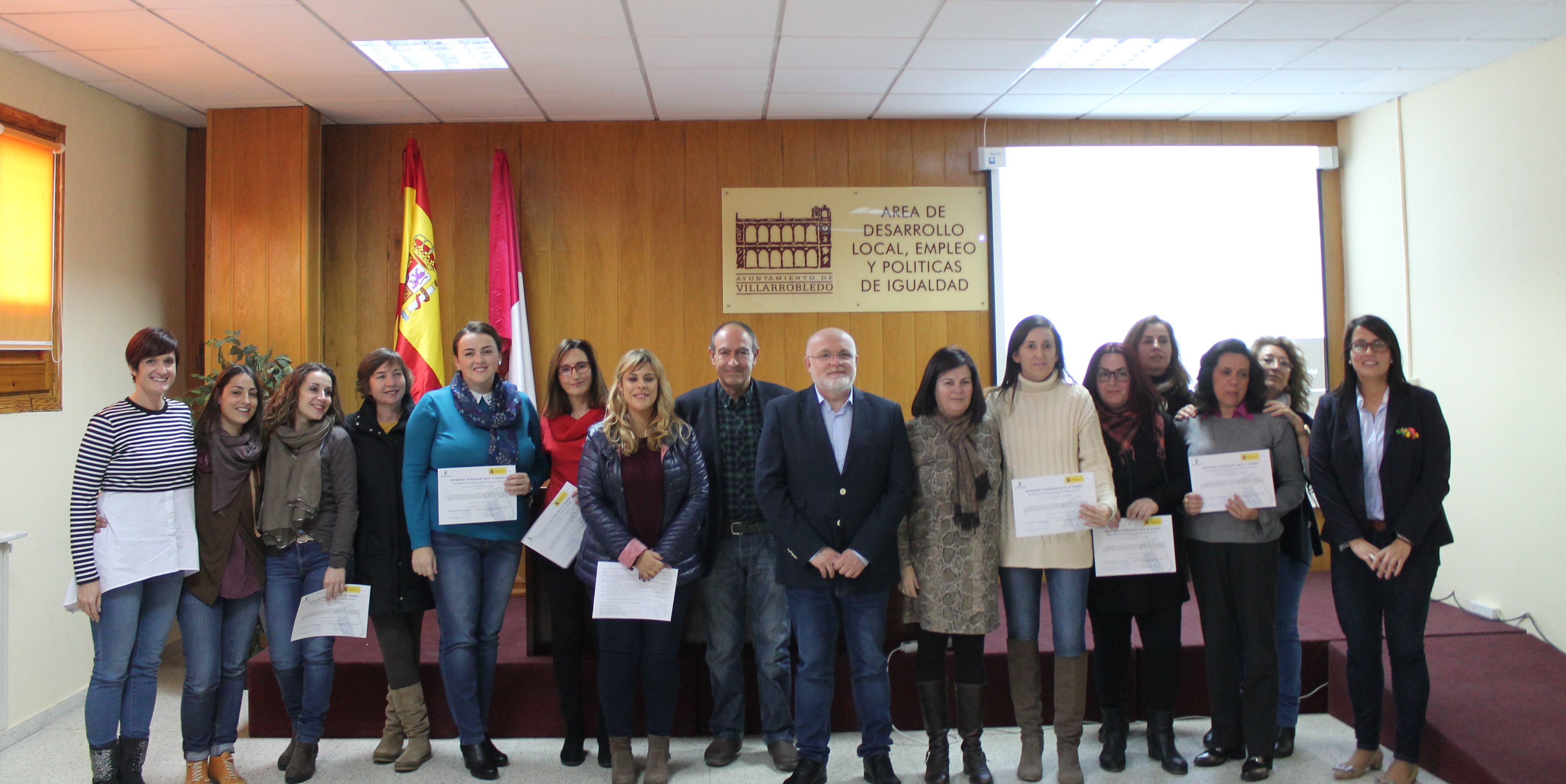 El acto institucional finalizó con la entrega de los certificados a las alumnas por parte del delegado de la Junta, Pedro Antonio Ruiz Santos; el director provincial de Economía, Empresas y Empleo, Nicolás Merino; la teniente alcaldesa de Villarrobledo, Trinidad Moyano; la directora del Taller de Empleo, Lourdes Cano; los monitores Javier Romero y Rosana Simarro, respectivamente; y las alumnas beneficiados de este programa mixto de seis meses con contrato de formación y aprendizaje.