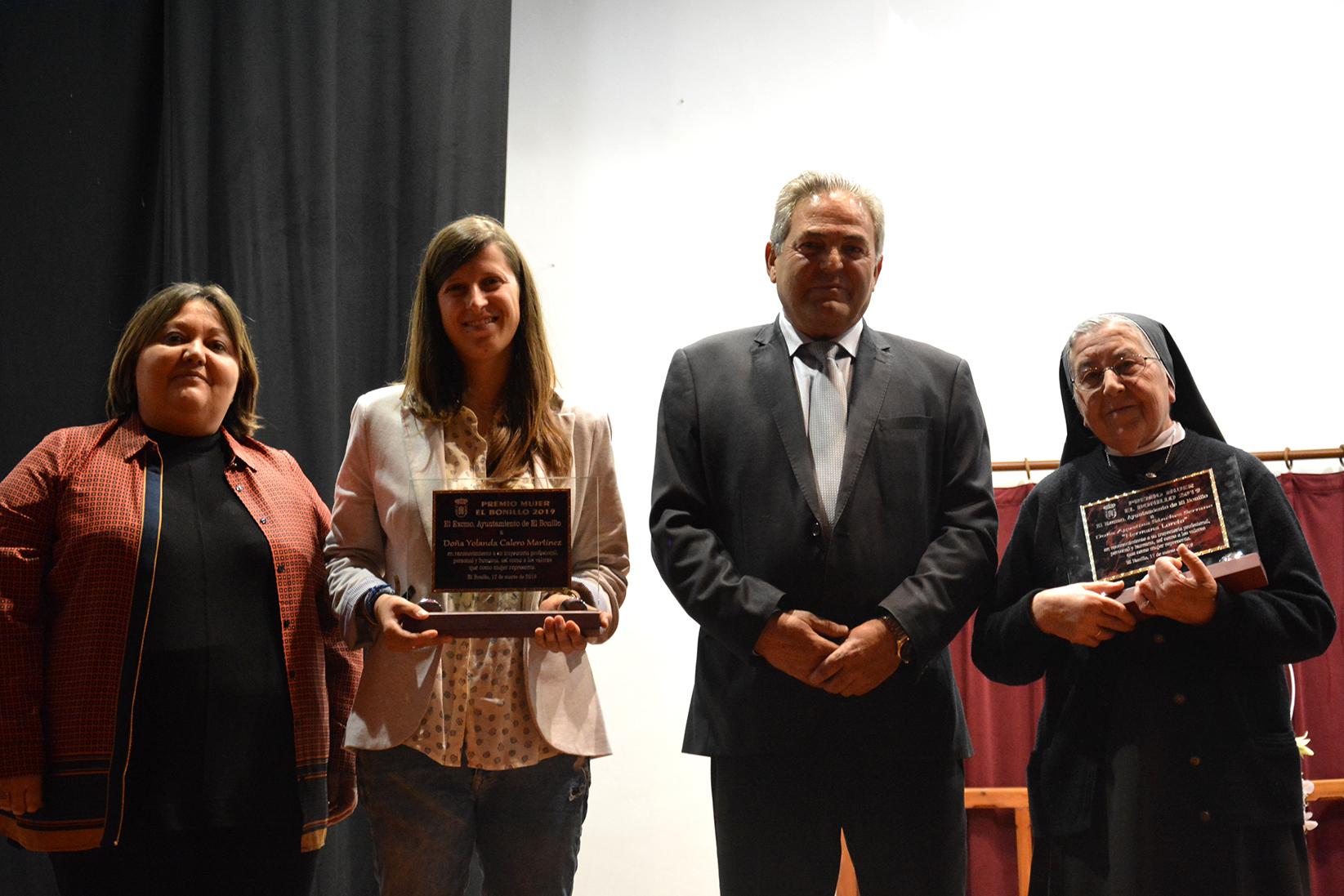 Durante el acto, que fue presentado por Pilar Sierra, Concejala de Igualdad y Cultura del Ayuntamiento de El Bonillo, se hizo un pequeño esbozo de la trayectoria de ambas galardonadas. De Agustina Sánchez, que es conocida en El Bonillo como la Hermana Loreto, Pilar Sierra dijo que “…ingresó en la Congregación de Hermanas de la Virgen del Monte Carmelo en 1958 en Orihuela. En 1977 llegó al Bonillo. Y aquí, en nuestro pueblo ha permanecido hasta hoy 42 años en los que ha trabajado en la Residencia para la Tercera Edad Nuestra Señora del Carmen. En ella ha ejercido como superiora y directora durante 15 años, y en la actualidad se encuentra jubilada. Además ha dado catequesis en la parroquia ayudando a dar la comunión al párroco. Y no podemos desvincular este reconocimiento a la labor social y educativa realizada a lo largo de su vida, y a su última etapa vinculada a nuestros mayores en la Residencia, con los que ha mostrado su compromiso día a día…”.