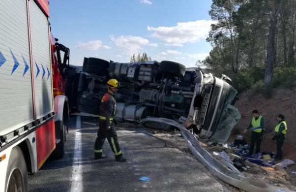 Según informa a Efe el servicio de urgencias y emergencias 112, el accidente ha ocurrido a las 9:43 horas, en el kilómetro 243 de la autovía A-3, donde como consecuencia del vuelco del camión ha quedado cortado el tráfico y la Guardia Civil ha habilitado un paso alternativo por el kilómetro 242.