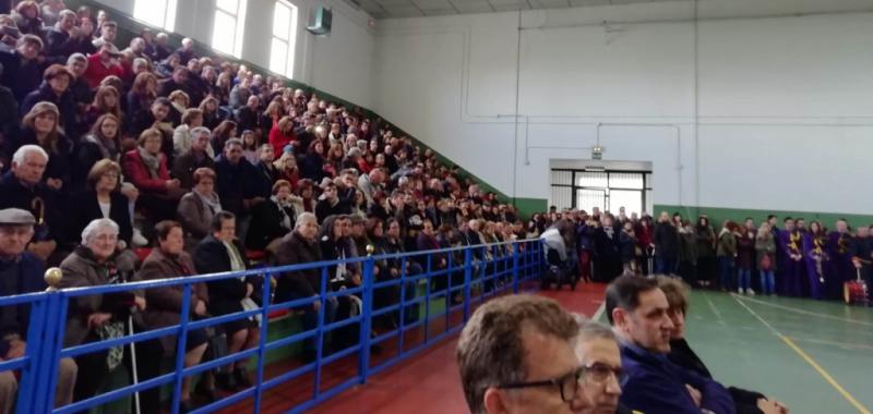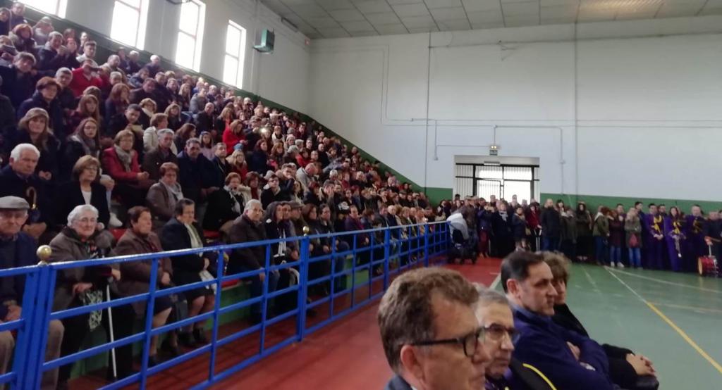 La climatología obligó a que el certamen fuese trasladado de la calle al pabellón polideportivo cubierto, se perdió quizá vistosidad pero se ganó en comodidad y las gradas del pabellón se abarrotaron pronto para ver a las bandas participantes.