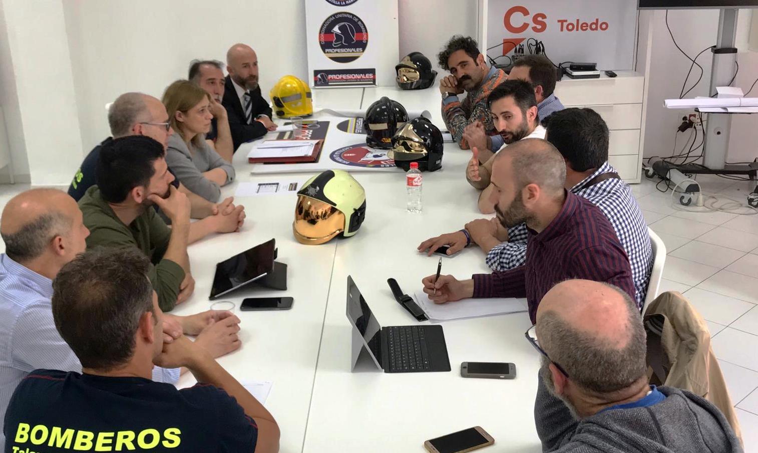 La candidata de Cs a la presidencia de C-LM, Carmen Picazo, junto al número uno a las Cortes regionales por la provincia de Toledo, David Muñoz han mantenido una reunión con la Asociación de Bomberos Profesionales de Castilla- La Mancha.
