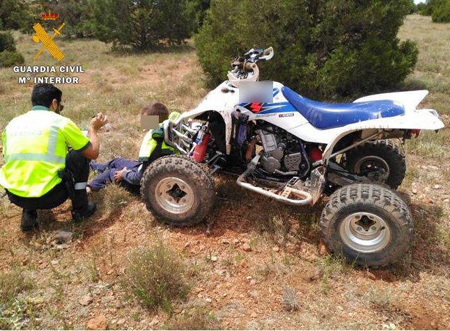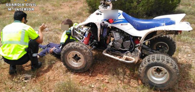 La Guardia Civil de Tráfico de Albacete ha auxiliado a un joven de 21 años de edad, vecino de la localidad albacetense de El Bonillo, tras sufrir un grave accidente con el quad que conducía por un terreno forestal del término municipal bonillense.