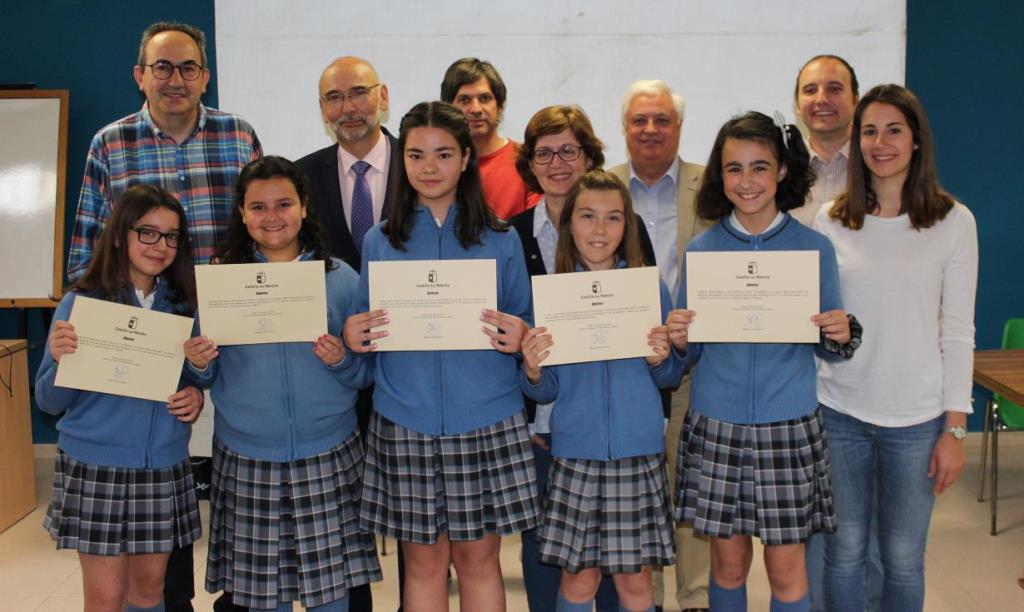 El director general de Salud Pública y Consumo en funciones, Manuel Tordera, ha hecho entrega de los premios regionales de la decimocuarta edición del concurso escolar sobre Consumo Responsable ‘Consumópolis’, en sus distintos niveles educativos, a los alumnos del equipo ‘Chicas de Oro’ del colegio ‘María Inmaculada’ de Albacete; el equipo ‘Encantados’ del CEIP ‘Santa María de la Expectación’ de Cuenca; y el equipo ‘Las latinas’ del IES ‘Cañada de la Encina’, de Iniesta (Cuenca).