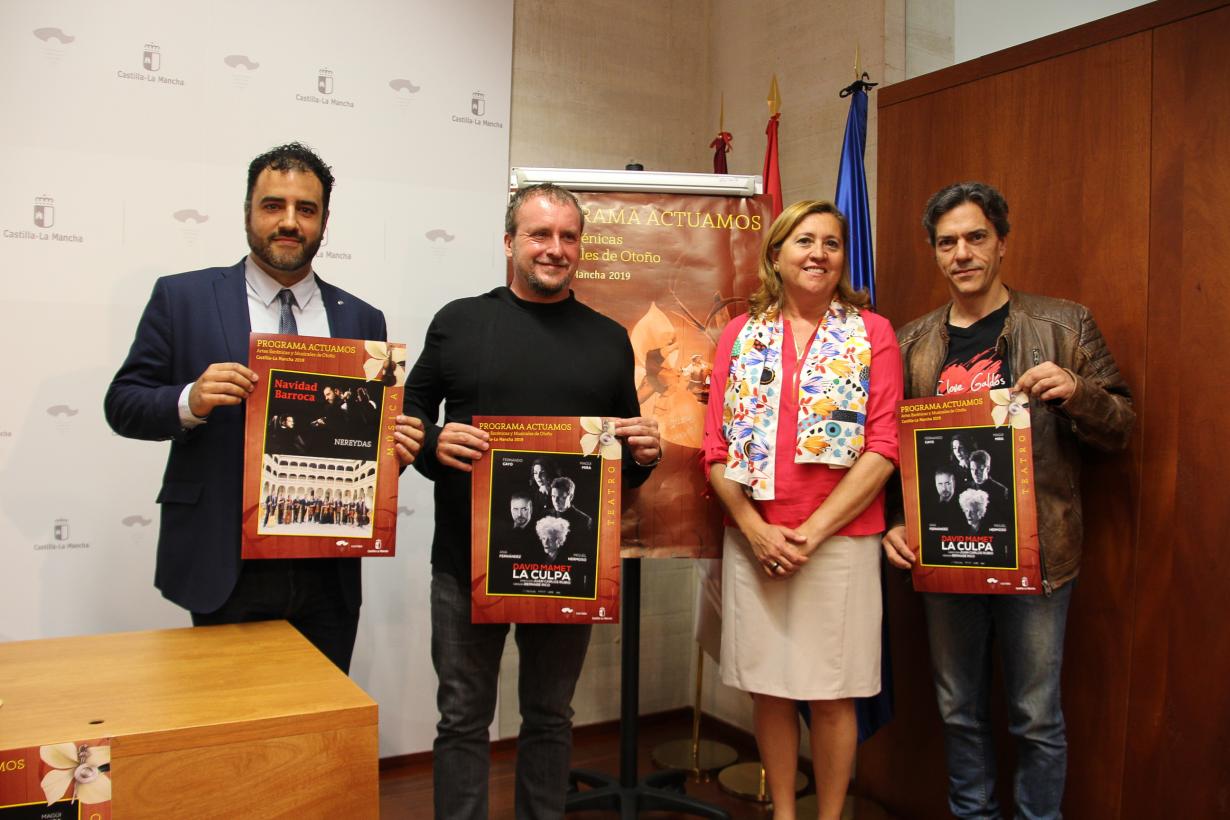 Así lo ha anunciado la consejera de Educación, Cultura y Deportes, Rosa Ana Rodríguez, en la presentación, en rueda de prensa, de la programación de Otoño de las Artes Escénicas y Musicales de Castilla-La Mancha, en un acto en el que ha estado acompañada por los actores Fernando Cayo y Miguel Hermoso, que girarán con ‘La culpa’, y del músico toledano Javier Ulises Illán, con ‘Nereydas’.
