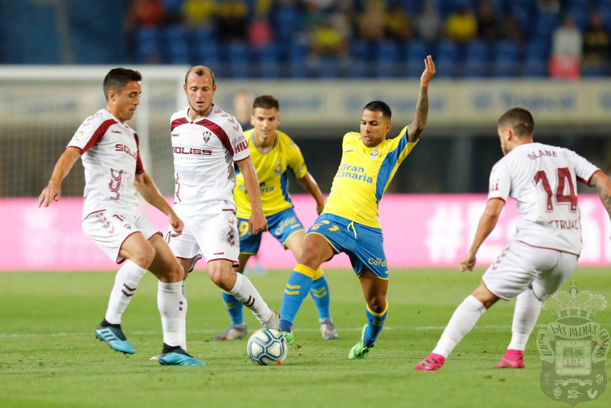 El Albacete se mostró dubitativo en defensa, y en una apertura de Viera hacia De la Bella, el lateral catalán le devolvió el balón y el habilidoso jugador isleño lo depositó en la portería de certero remate raso cruzado.